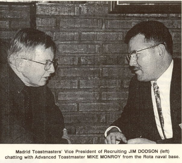 Jack Campbell recieving the Madrid bannerToday is our official 15th birthday as a chartered club in Toastmasters. 15 years of Toastmasters in Spain, seeing how we grow in our skills by practicing in a safe environment. We asked the founder of our club, Jim Dodson, to tell us something about the beginnings of our club. Here you are his words.